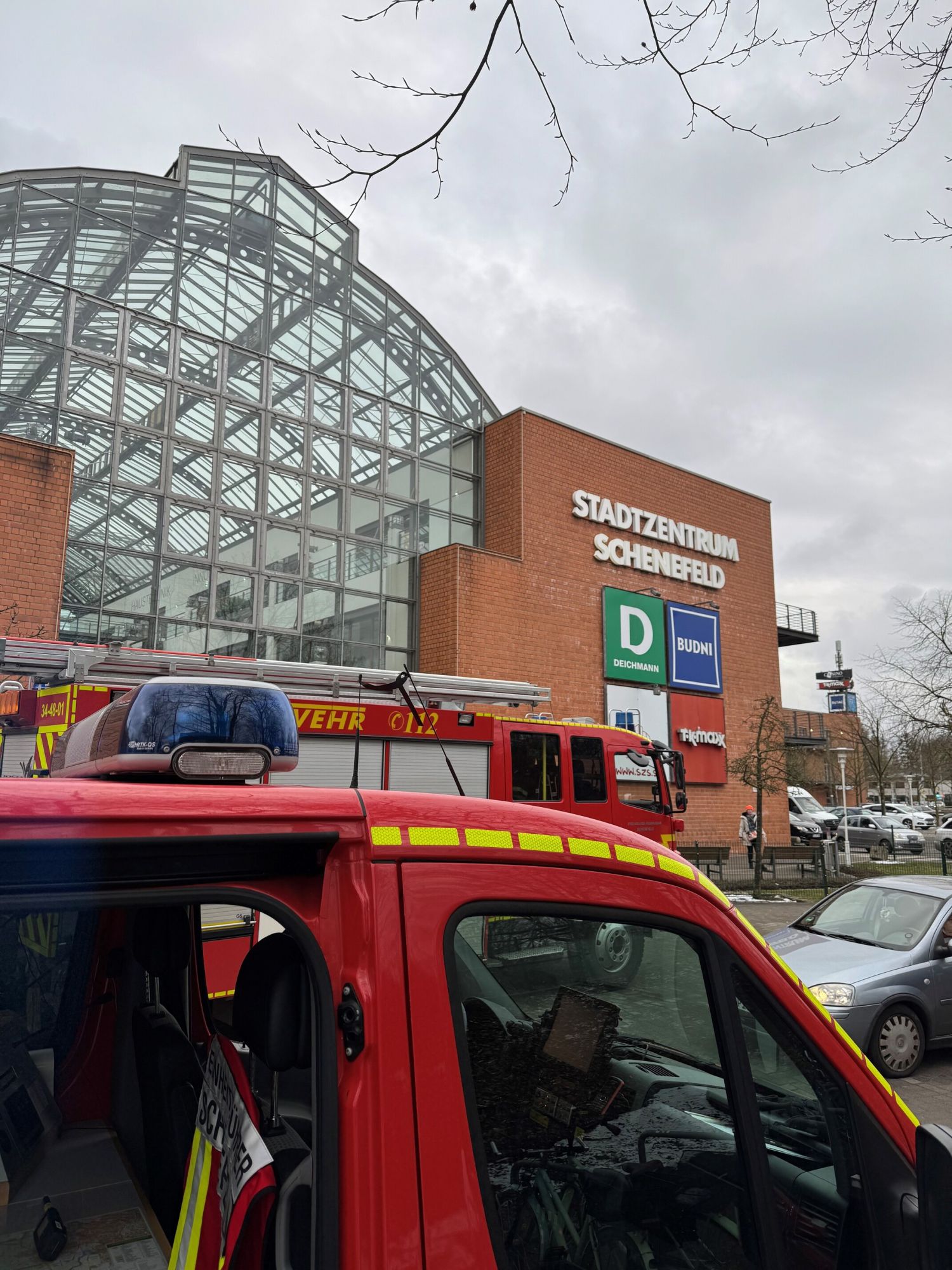 Bei den Erkundungsmaßnahmen wurden die Einsatzkräfte durch die Polizei informiert, dass in einem Fahrstuhl mehrere Personen eingeschlossen waren. Die Feuerwehr Schenefeld konnte die acht Personen im Fahrstuhl schnell befreien.